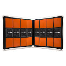 Ultra PROs 12-Pocket Zippered PRO-Binders are designed for collecting and organizing playsets of your favorite trading cards. Each binder features a padded leatherette cover with a zipper closure. After unzipping the binder, youll find twenty 12-pocket pages sized for standard trading cards in side-loading pockets, allowing you to store up to 480 cards in Deck Protector sleeves. Pages feature a low-friction black backing, creating a separation between the front and back pockets, as well as providing cards a classic framed look. Every PRO-Binder is made with acid-free, non-PVC materials to ensure your cards are protected and preserved. The 12-Pocket Playset Premium PRO-Binders are available in 7 colors: Blue, Green, Purple, Red, Light Blue, Yellow, and Teal.